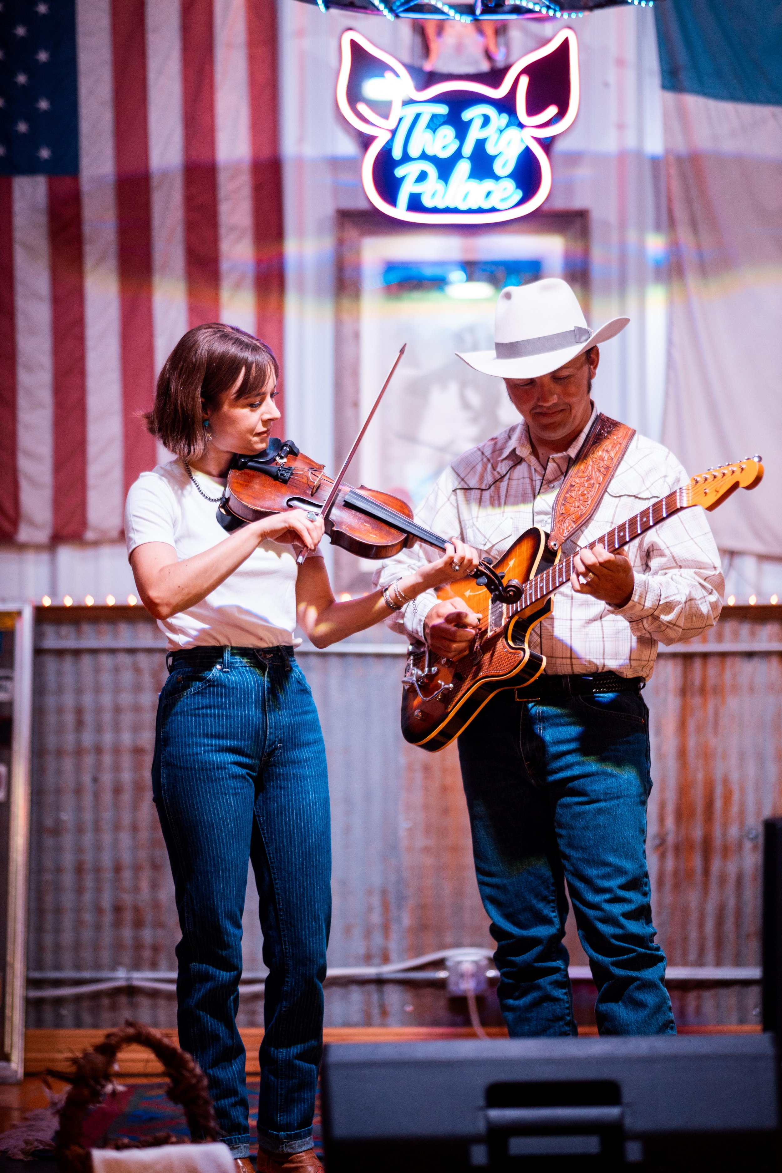Texas singer, songwriter, and band leader Sam Platts grew up in southern Wyoming, taking an interest in traditional country music at an early age. His father, Scott, is a luthier and skilled guitar player himself, which inspired Sam to learn to play. He first stepped on the bus with a touring country act in his early 20’s, and the rest is history. Sam later played lead guitar for Wylie and the Wild West, which took him all over the country and world. Sam’s songwriting is inspired by his roots in the West, traditional country, and Texas dancehalls. Sam’s wife, Lilly, has played fiddle in the band for the last decade, and the couple is currently preparing to release Sam’s full-length album Right Where I Belong, in early 2026.